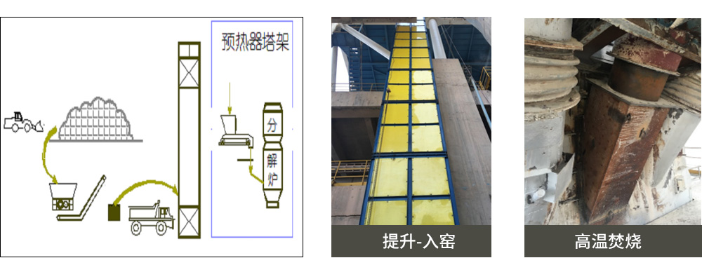 經(jīng)拆包、分揀、破碎后,用廠內(nèi)專用危險(xiǎn)廢物運(yùn)輸車(chē)輛(密閉形式),轉(zhuǎn)運(yùn)至窯尾固態(tài)廢物處置線提升機(jī),經(jīng)提升機(jī)提升至窯尾平臺(tái),再經(jīng)皮帶機(jī)、鎖風(fēng)等裝置投入窯尾煙室,實(shí)現(xiàn)高溫焚燒處置。