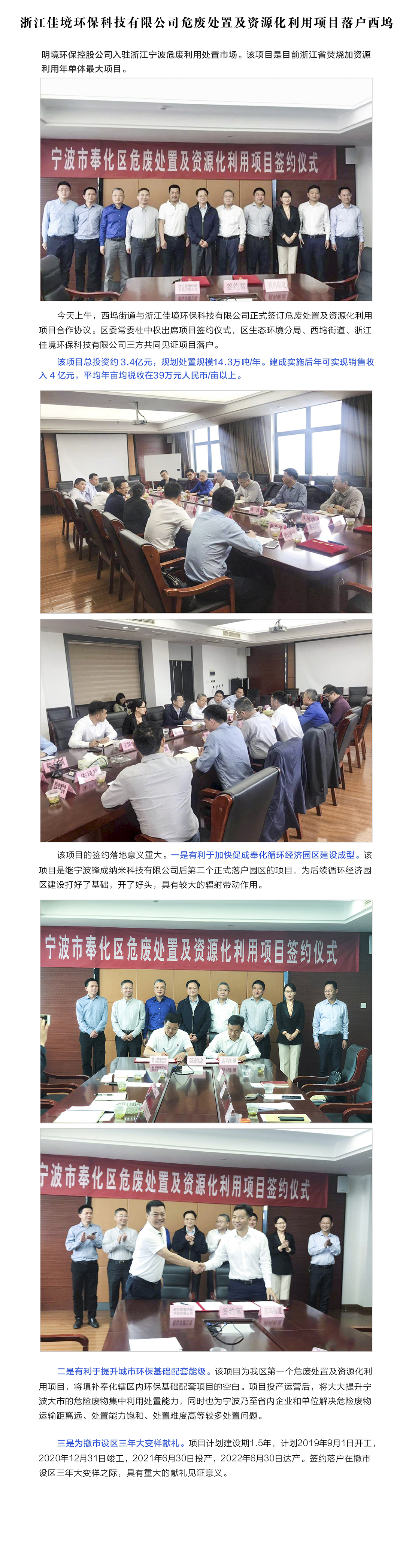 浙江佳境環(huán)??萍加邢薰疚U處置及資源化利用項(xiàng)目落戶西塢