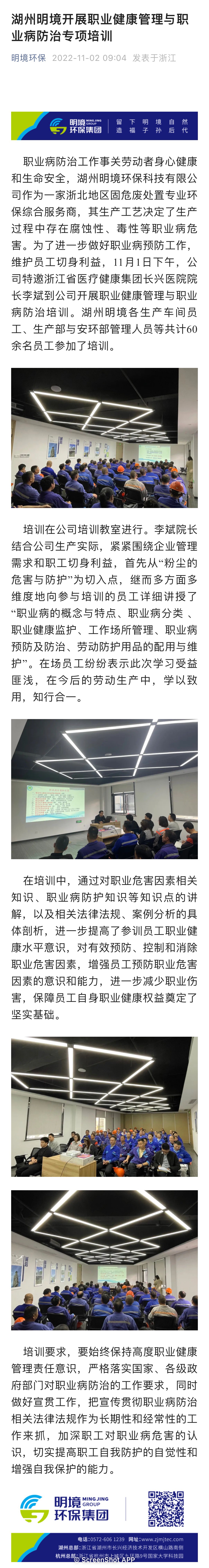 湖州明境開展職業(yè)健康管理與職業(yè)病防治培訓