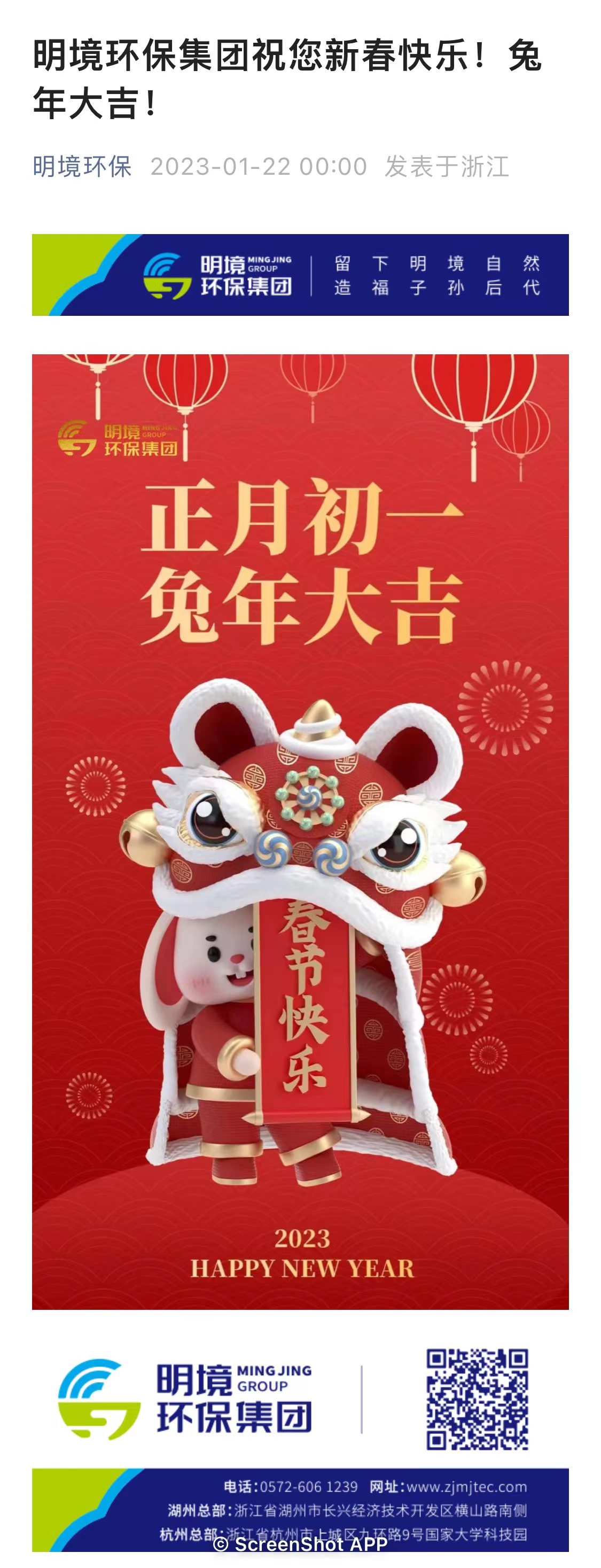 明境環(huán)保集團(tuán)祝您新春快樂(lè)!兔年大吉!