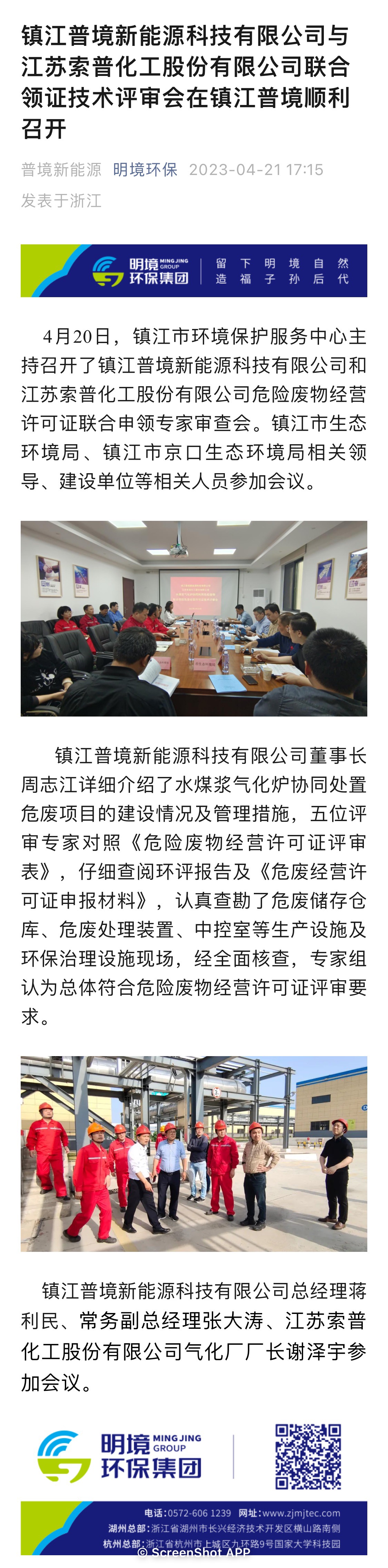 鎮(zhèn)江普境新能源科技有限公司與江蘇索普化工股份有限公司聯(lián)合領(lǐng)證技術(shù)評(píng)審會(huì)在鎮(zhèn)江普境順利召開